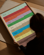 Un calendario anual diseñado para ver el año de un solo vistazo. Puedes enmarcarlo o pegarlo directamente en la pared, convirtiéndolo en una pieza funcional y decorativa.